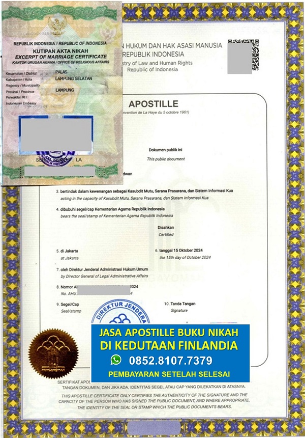 Informasi Mengenai Biaya Apostille Buku Nikah di Kemenkumham untuk dibawa ke Finlandia Silakan Hubungi :
